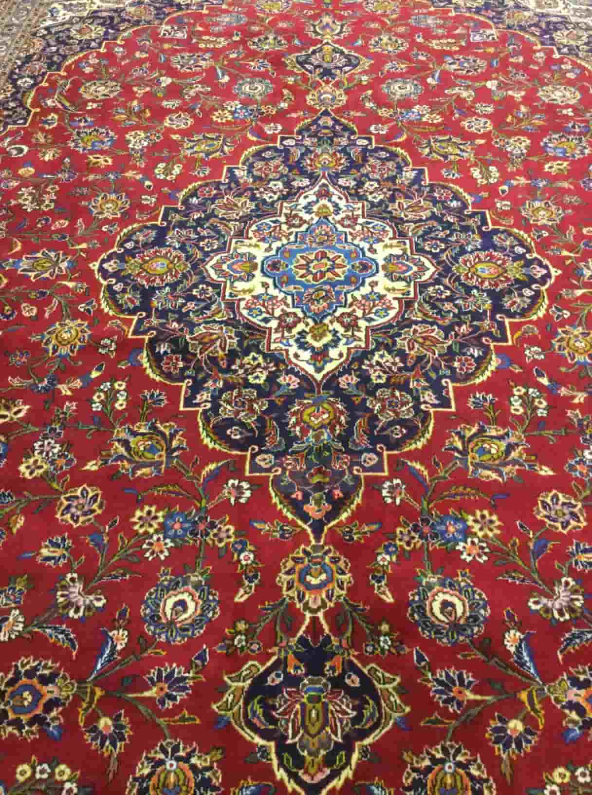 - Design: Classic medallion with arabesque and floral motifs
