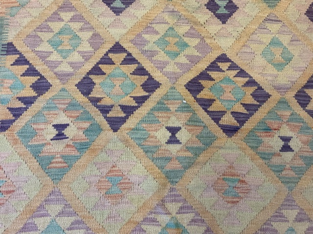 Bring timeless craftsmanship and natural beauty into your home with this authentic handmade Afghan Kilim rug. Carefully woven in Afghanistan using traditional flat-weave Kilim techniques, this rug is crafted from 100% pure natural wool pile, making it both durable and comfortable underfoot.