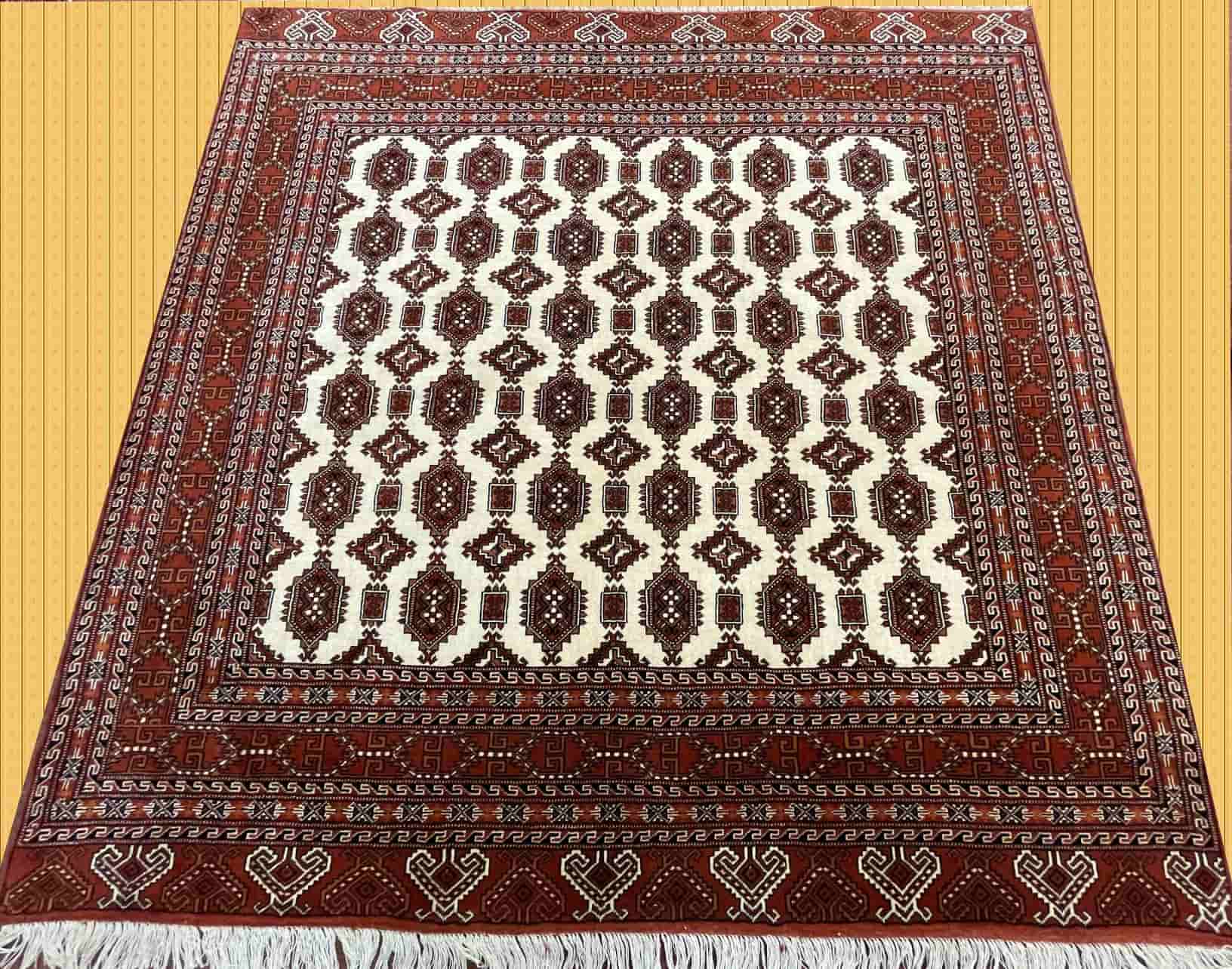 Turkman rugs are admired worldwide for their distinctive patterns, exceptional craftsmanship, and durability. Known for their elegant simplicity and rich heritage, these rugs are designed to last for generations.