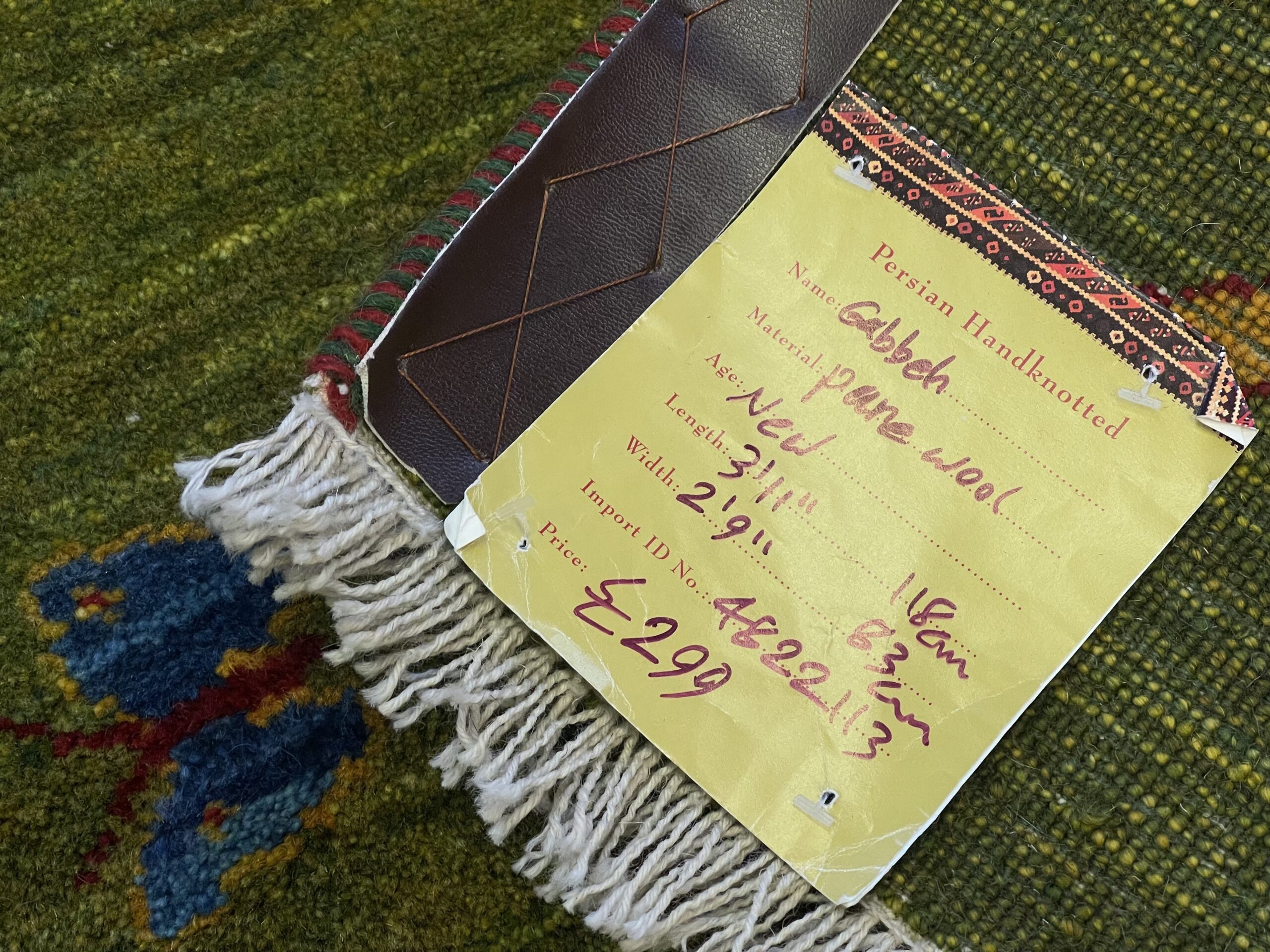 This rug is brand new and imported by Heaven on Earth Imports. To guarantee authenticity, we provide a copy of the Certificate of Origin issued by the Chamber of Commerce at the time of import.