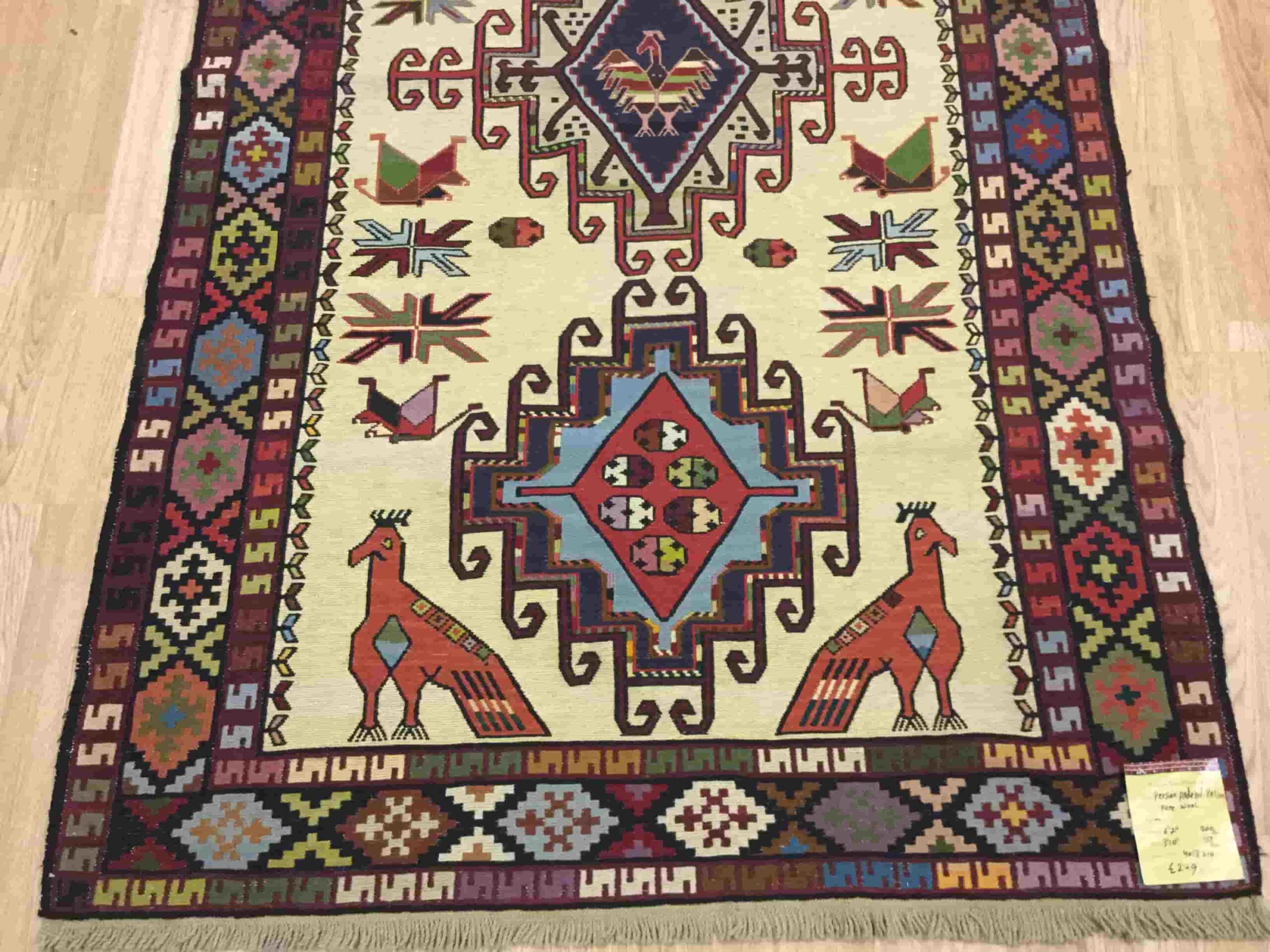 Please note that, like all Kelims, it would require a non-slip underlay for safety and stability. We offer a high-quality Super Dual underlay, perfectly sized for this rug, at £25.90.