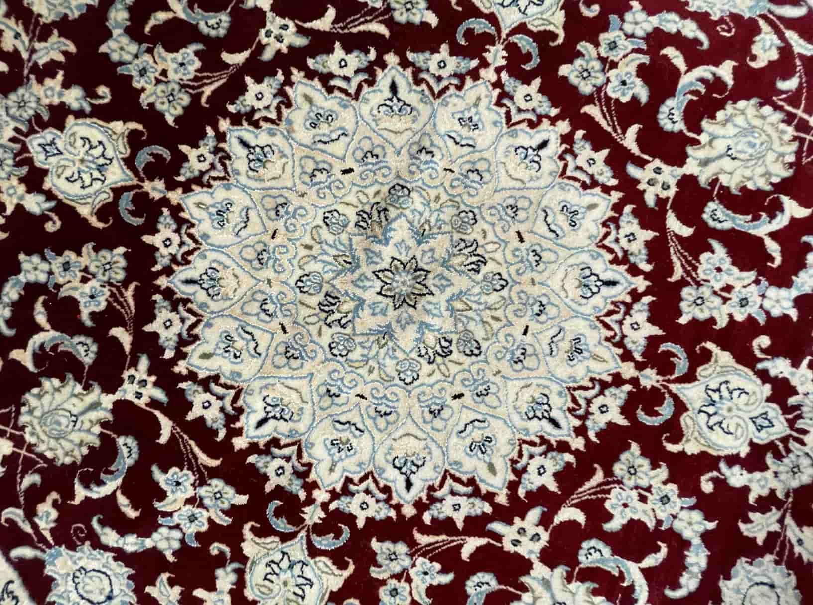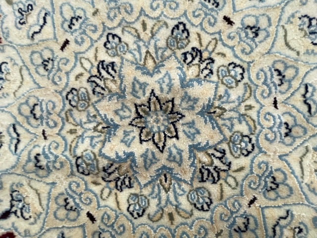 This exquisite Persian hand-knotted rug features a classic Nain medallion design, renowned for its elegance and fine craftsmanship. Originating from the historic city of Nain in central Iran, Nain rugs are celebrated worldwide for their intricate patterns and refined detail.