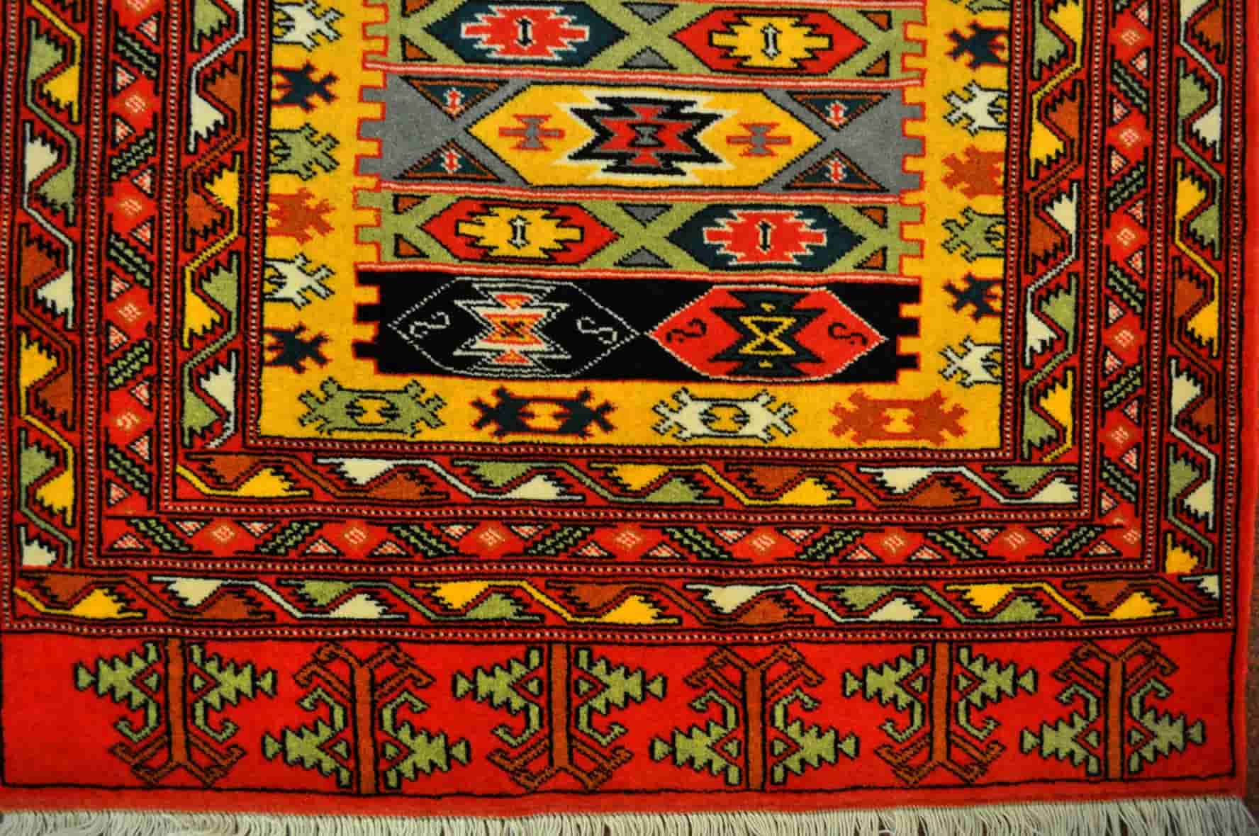 Turkman rugs are well known for their fine quality materials, high knot density, and distinctive geometric patterns. Their designs are typically simple yet striking, reflecting the rich cultural heritage and artistic traditions of the Turkman tribes. These rugs are especially valued for being hardwearing, durable, and long lasting, making them suitable for both decorative and everyday use.