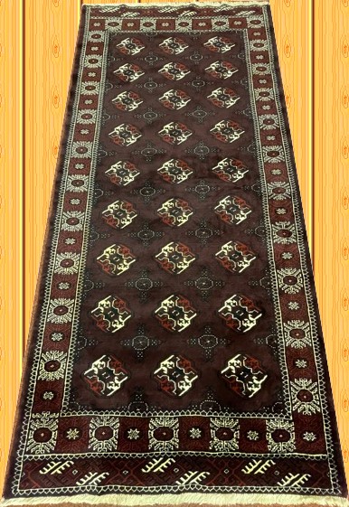 A distinctive feature of many Turkman rugs is the traditional camel foot motif. Camels played a vital role in the daily life and culture of the Turkman tribes, and this importance is reflected in their rug designs. Because a similar motif appears in rugs from India and Pakistan—where it is often referred to as the elephant foot design—the pattern has also become widely known in the West by that name.