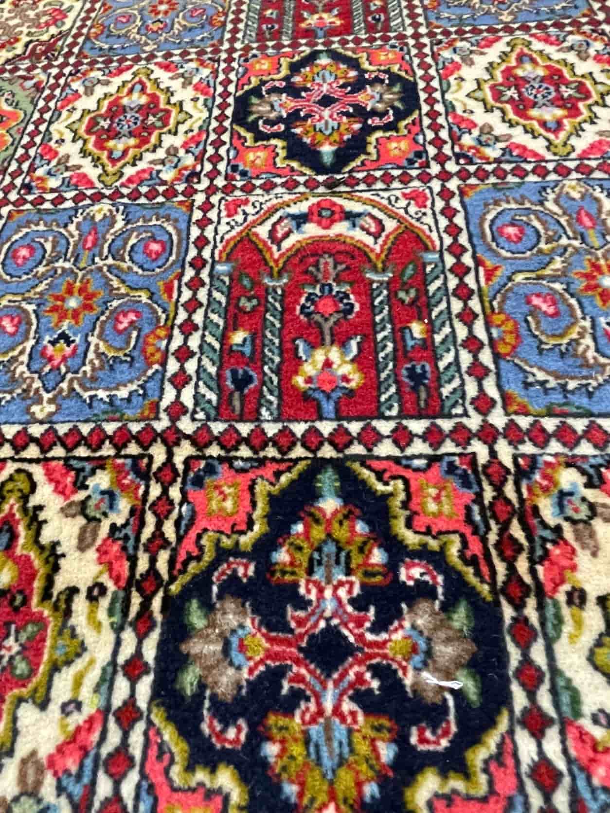 Although it is about 50 years old it is in a perfect condition, nothing has happened to it. It is professionally cleaned before importing. It is imported by “Heaven on Earth Imports”. We provide you with a copy of the certificate of origin issued by the Chamber of Commerce to assure you it is original Persian.