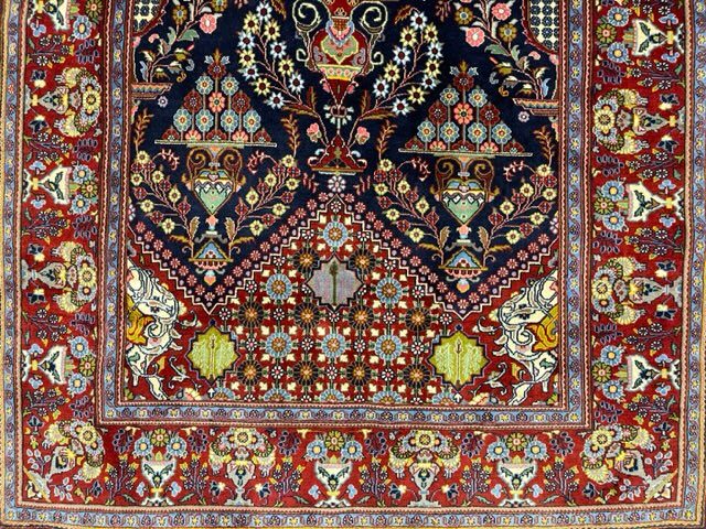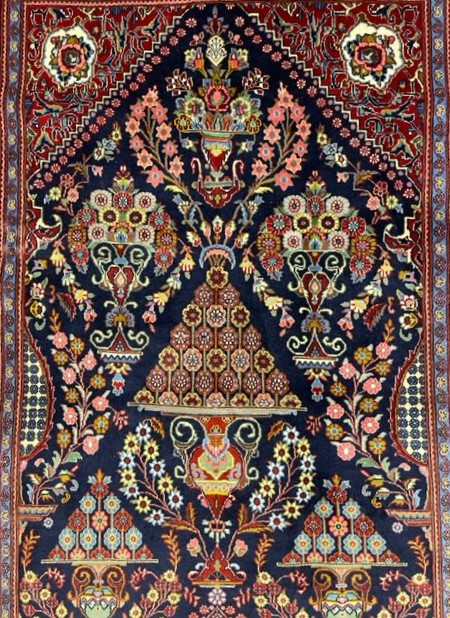 This beautiful hand-knotted Persian rug is known as Kashan Joshaghan, named after the region where it is crafted. There are three villages in Persia called Joshaghan, but the one we’re referring to is located in the Kashan region, often referred to as Joshaghan Ghali (where “Ghali” means carpet). Joshaghan is one of the few villages that has earned worldwide recognition for its unique and special designs. The main motif in Joshaghan rugs is Shandlin, typically decorated with floral patterns. The philosophy behind this motif is rooted in the ancient Persian tradition of Illumination, known as Hekmate Khosravani. “Hekmat” is a Persian word for philosophy, which also encompasses mysticism and mythology.