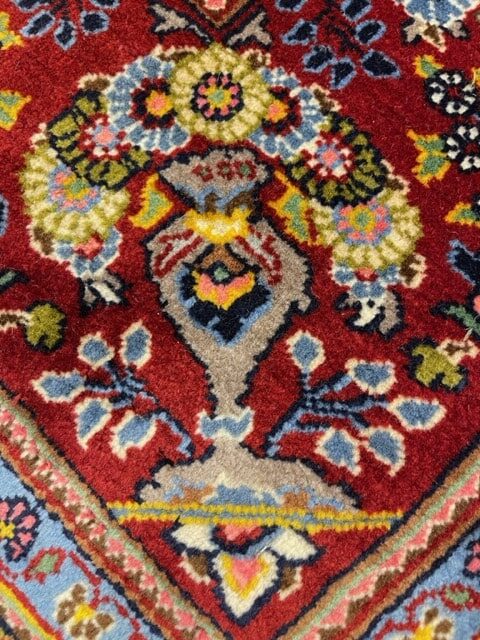 Although this rug is about 60 years old, it is in perfect condition and looks as if it is brand new. It has been washed before being imported.