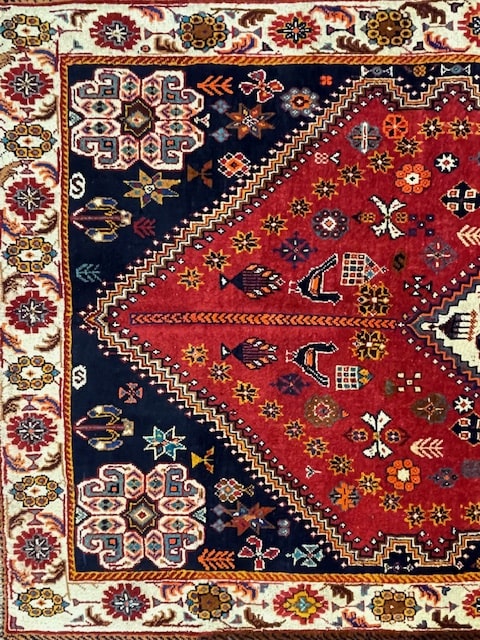 This runner is also referred to as Qashqai, named after the nomadic Qashqai people who weave these exceptional pieces. The Qashqai tribe migrates seasonally within southern Iran—settling in Fars Province near Firouzabad from spring to early autumn, and moving toward Hormozgan Province near the Persian Gulf during the cooler months. Their rich cultural traditions and storytelling are beautifully reflected in each handmade rug.