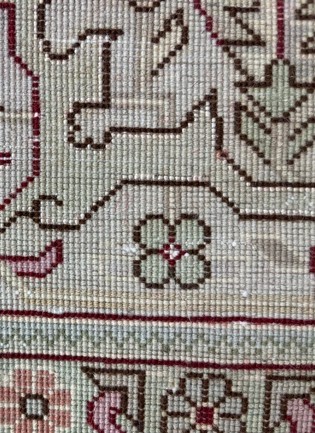 With 289 knots per square inch, the rug contains an impressive total of 1,404,540 knots. A skilled craftsperson can weave around 500 knots per hour, meaning this rug required approximately 2,809 hours of meticulous handwork to complete — a true testament to traditional craftsmanship.