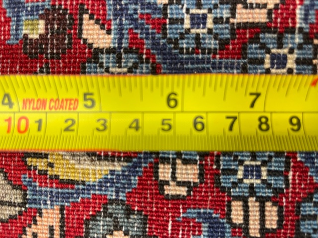 With an impressive 256 knots per square inch, this rug exemplifies true artisan craftsmanship. Measuring 2,856 square inches, it contains a total of 731,136 individually hand-tied knots. At an average weaving rate of 600 knots per hour, its creation required over 1,218 hours of skilled labour — a testament to the dedication and expertise of the master weaver.