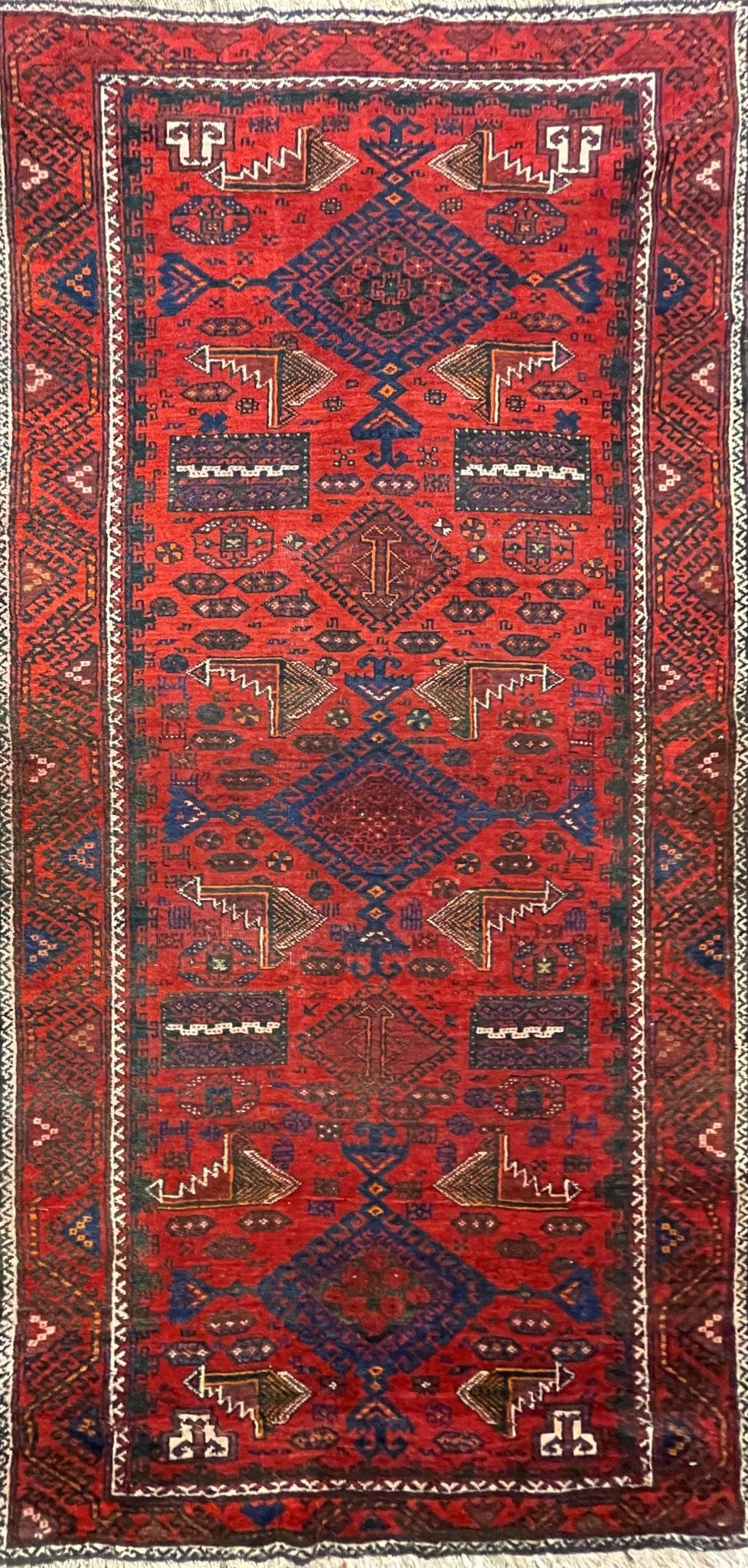 With its age, rarity, and traditional craftsmanship, this antique Balouch rug is both a decorative statement and a collectible piece of Persian textile history.