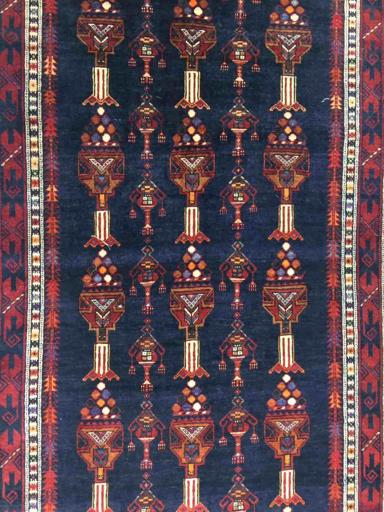 9This authentic handmade Balouch Persian runner takes its name from the region where it is woven — Balochistan in southeastern Iran. (While a region named Balochistan also exists in Pakistan, Persian Balouch rugs are especially prized for their superior craftsmanship and quality.)