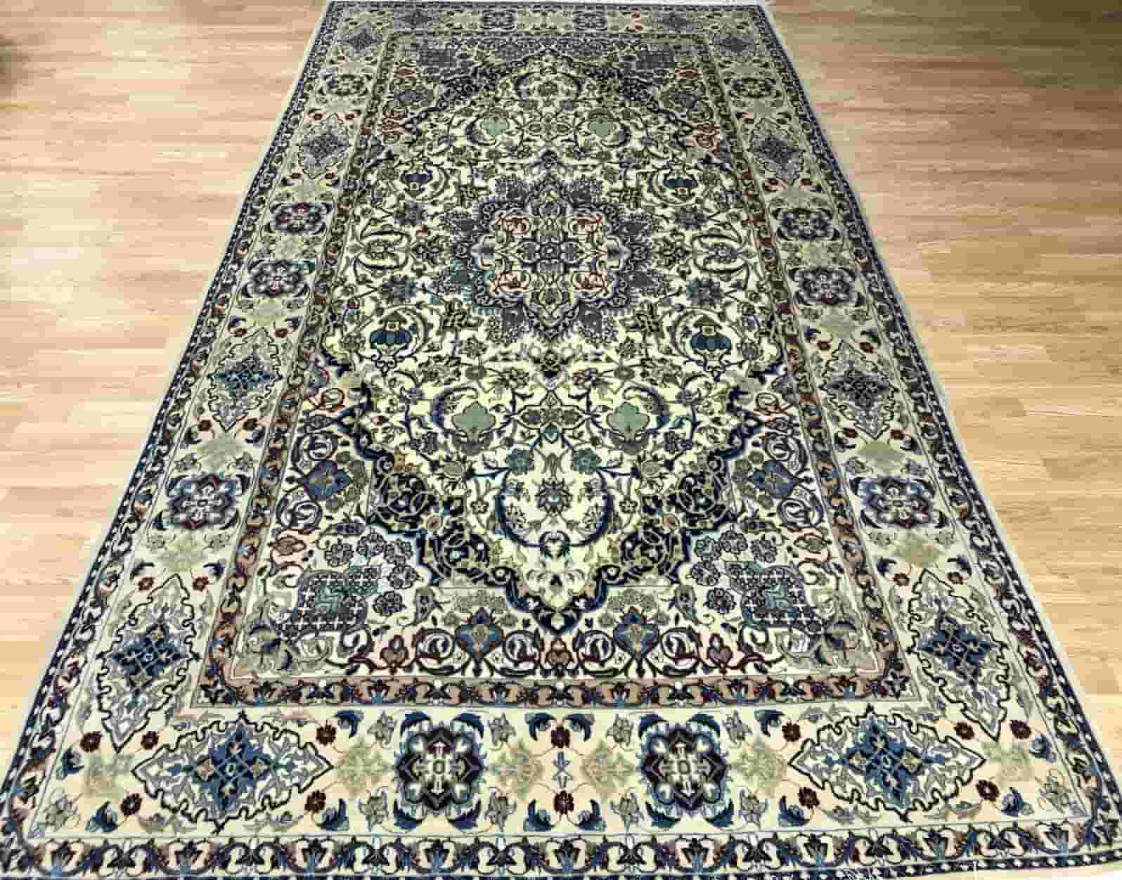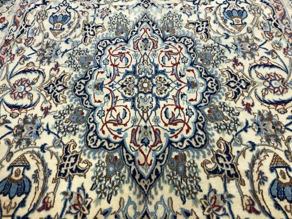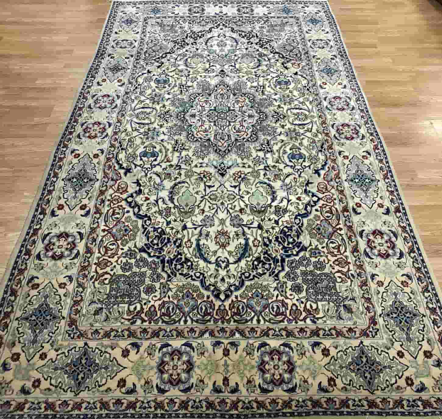 Experience the artistry of Persia with this exquisite Nain Persian hand-knotted carpet, a true masterpiece from the city of Nain in Isfahan Province, Central Iran. Nain rugs are celebrated worldwide for their high knot density, intricate designs, and premium-quality materials, making them a hallmark of Persian craftsmanship.