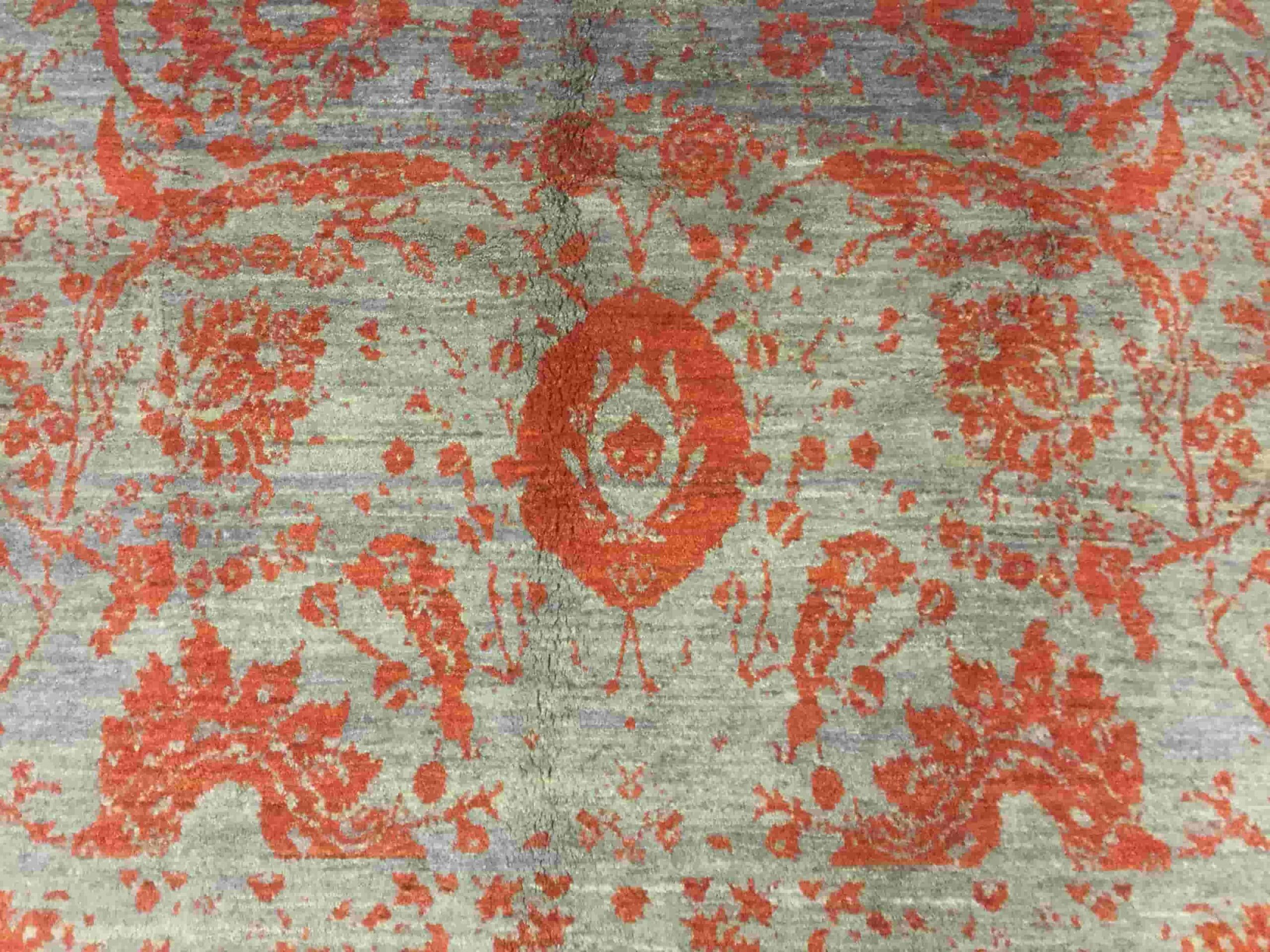 This Persian handmade rug is made of 100% pure wool pile, cotton weft. Its pattern is an inspiration of post-modernism art. The warm red colour is sitting nice on top of the cold grey colour. It will match nicely with a neutral wall colour.