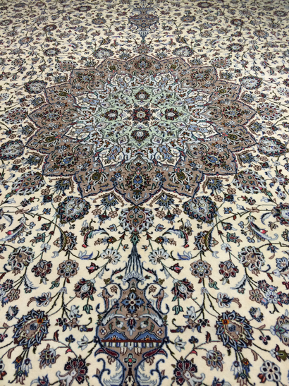 This exquisite Persian Kashan hand-knotted rug takes its name from the historic city of Kashan, located in central Iran. For centuries, Kashan has been celebrated worldwide for producing some of the finest handmade carpets, renowned for their intricate designs, durability, and exceptionally high knot density.